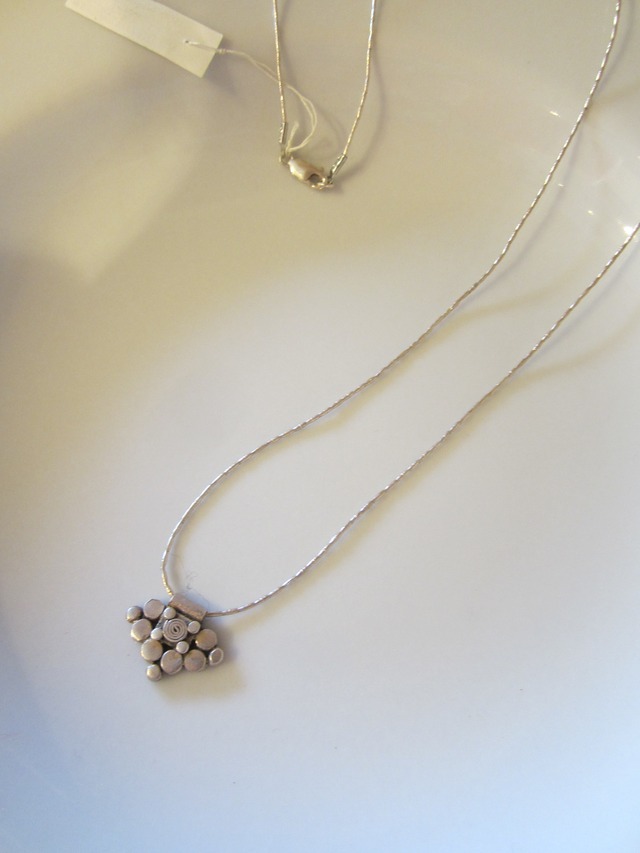タイのカレン族の人たちが作ったシルバーのロングネックレス 軽やかなビーズにボリュームあるトップ カレンシルバーらしい 落ち着いたシルバーの輝き 長さ 約70cm トップの大きさ 約1.7×1.2