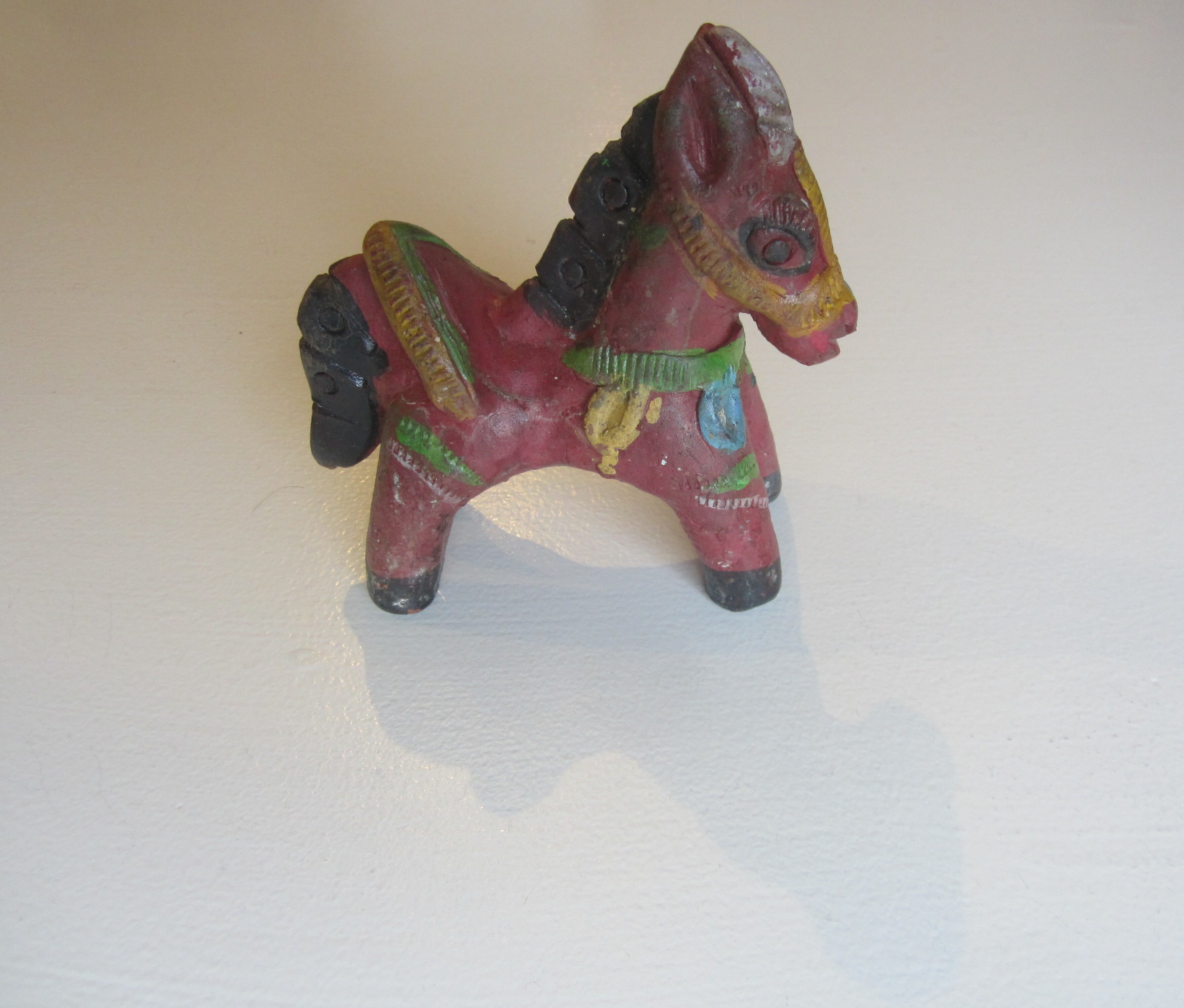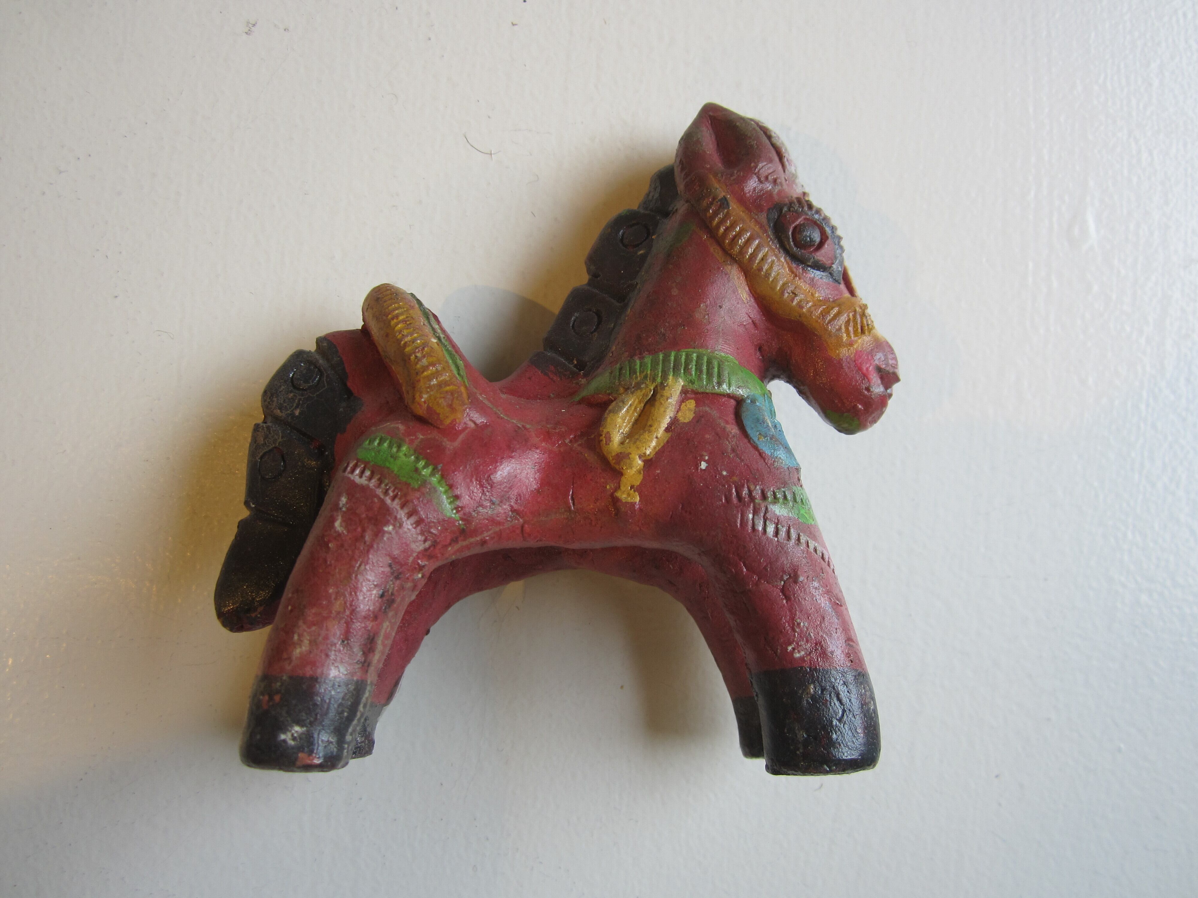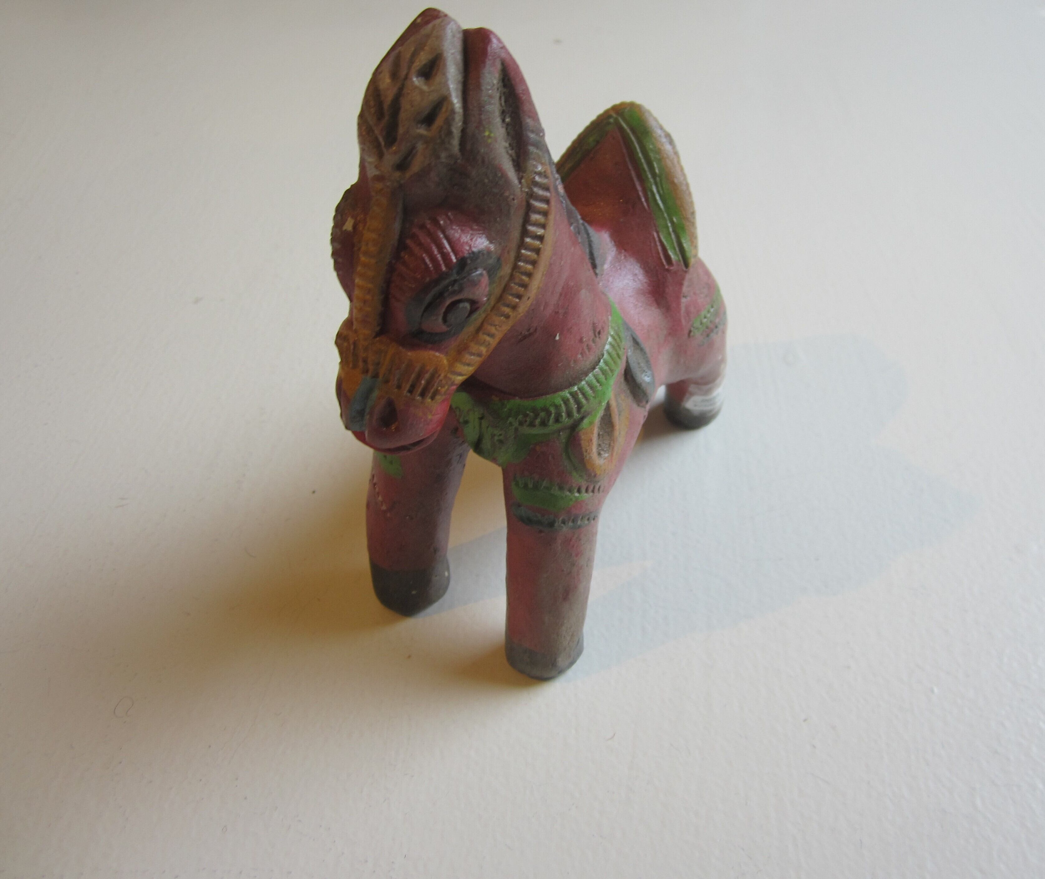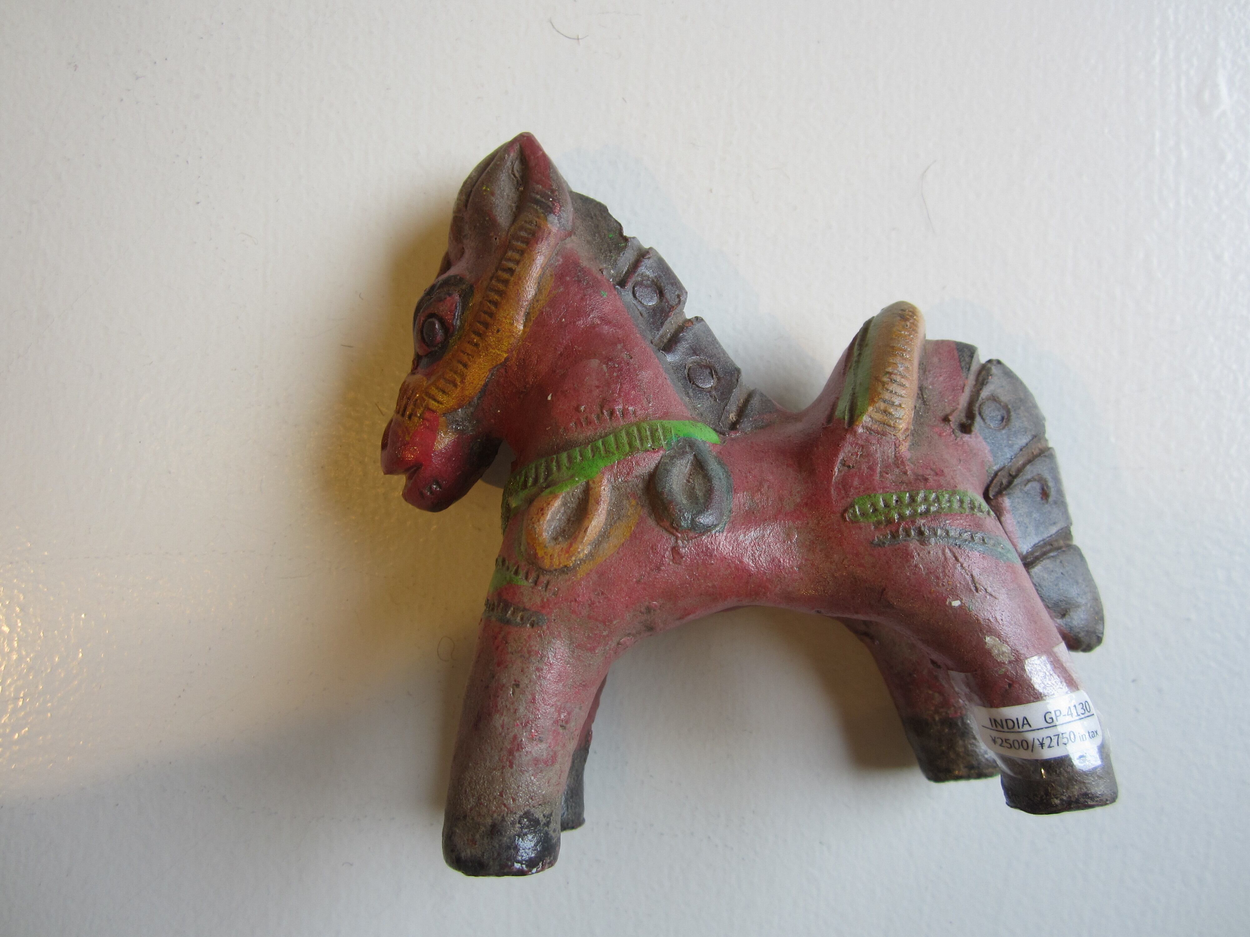 陶器の馬のオブジェ 赤や緑の色合いが幸せを届けてくれそうな 家のシンボルに サイズ 約11.5×H12 陶器 インド製