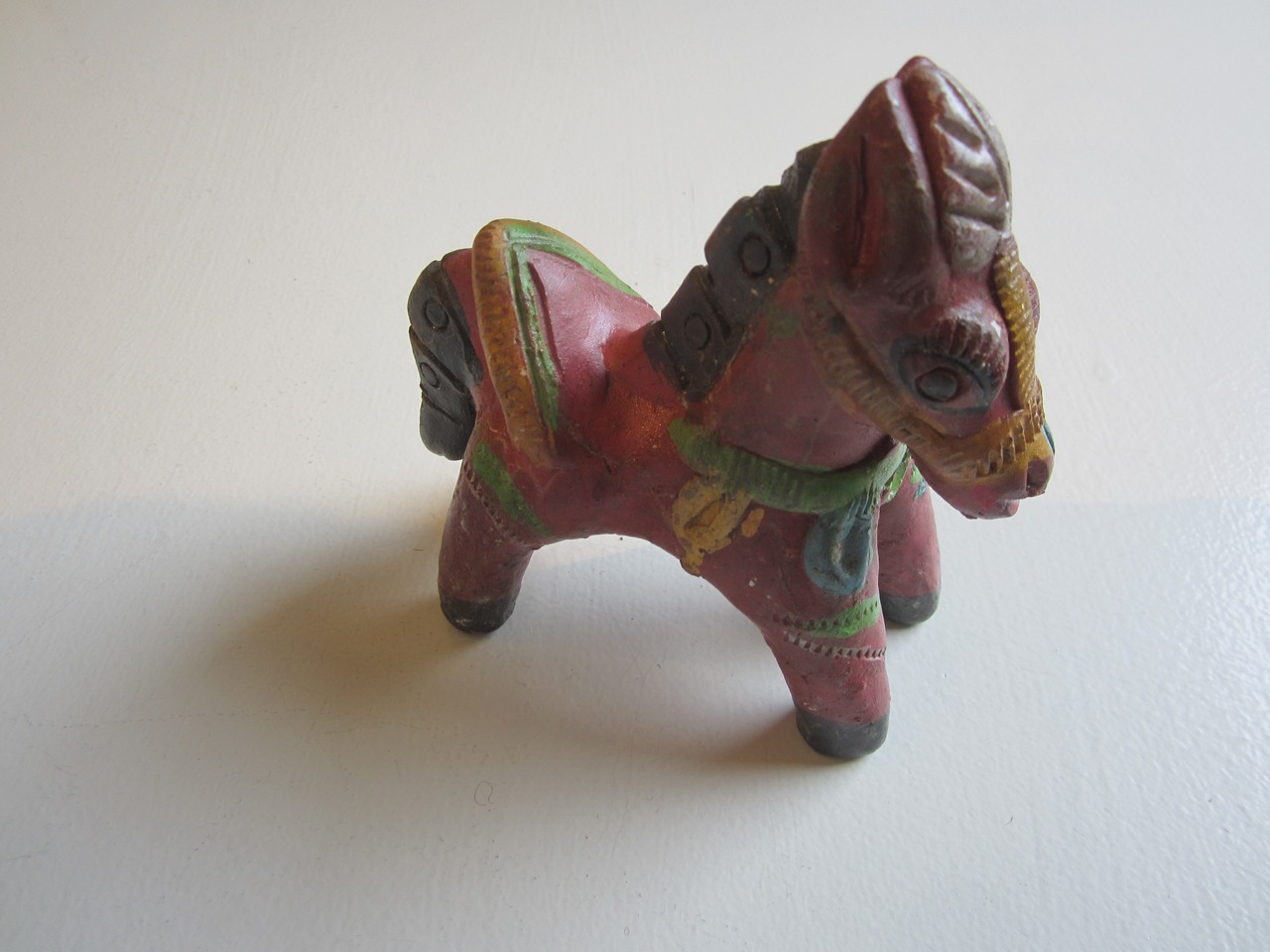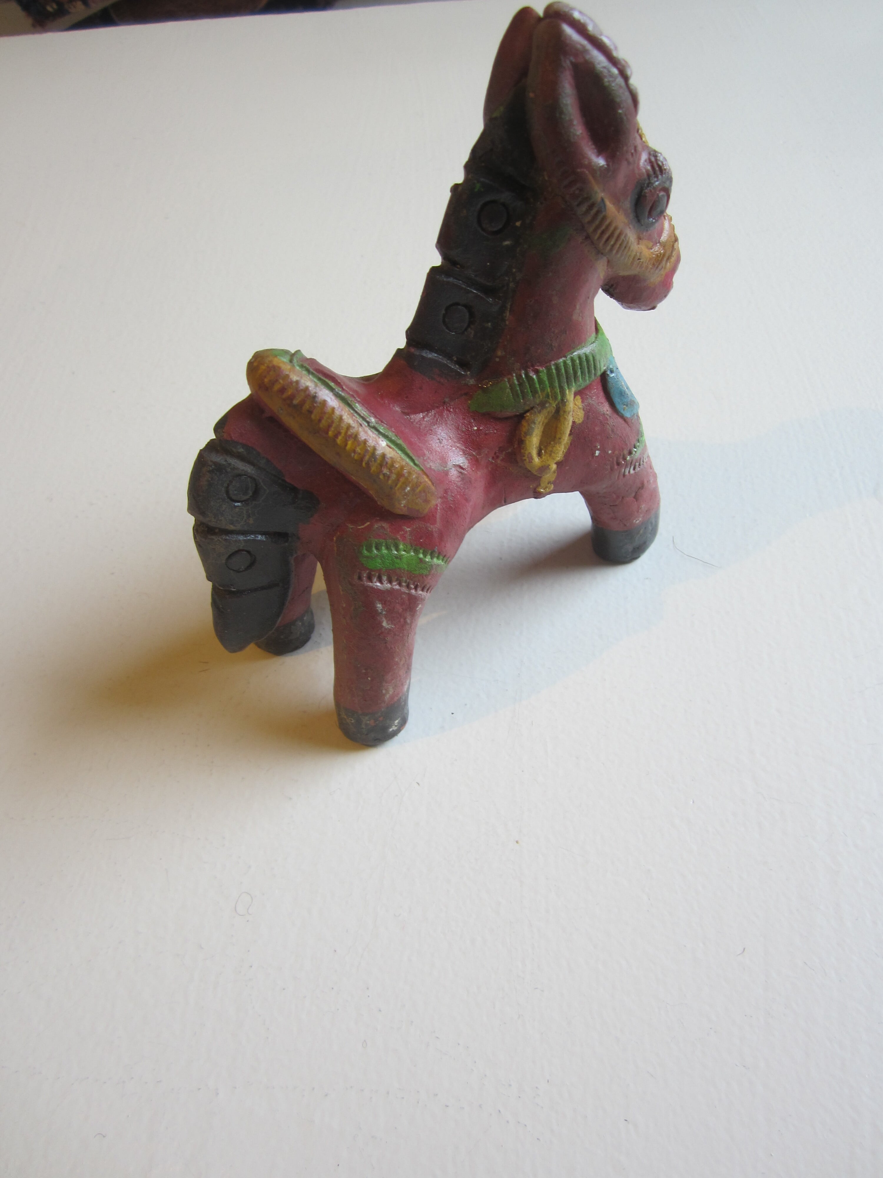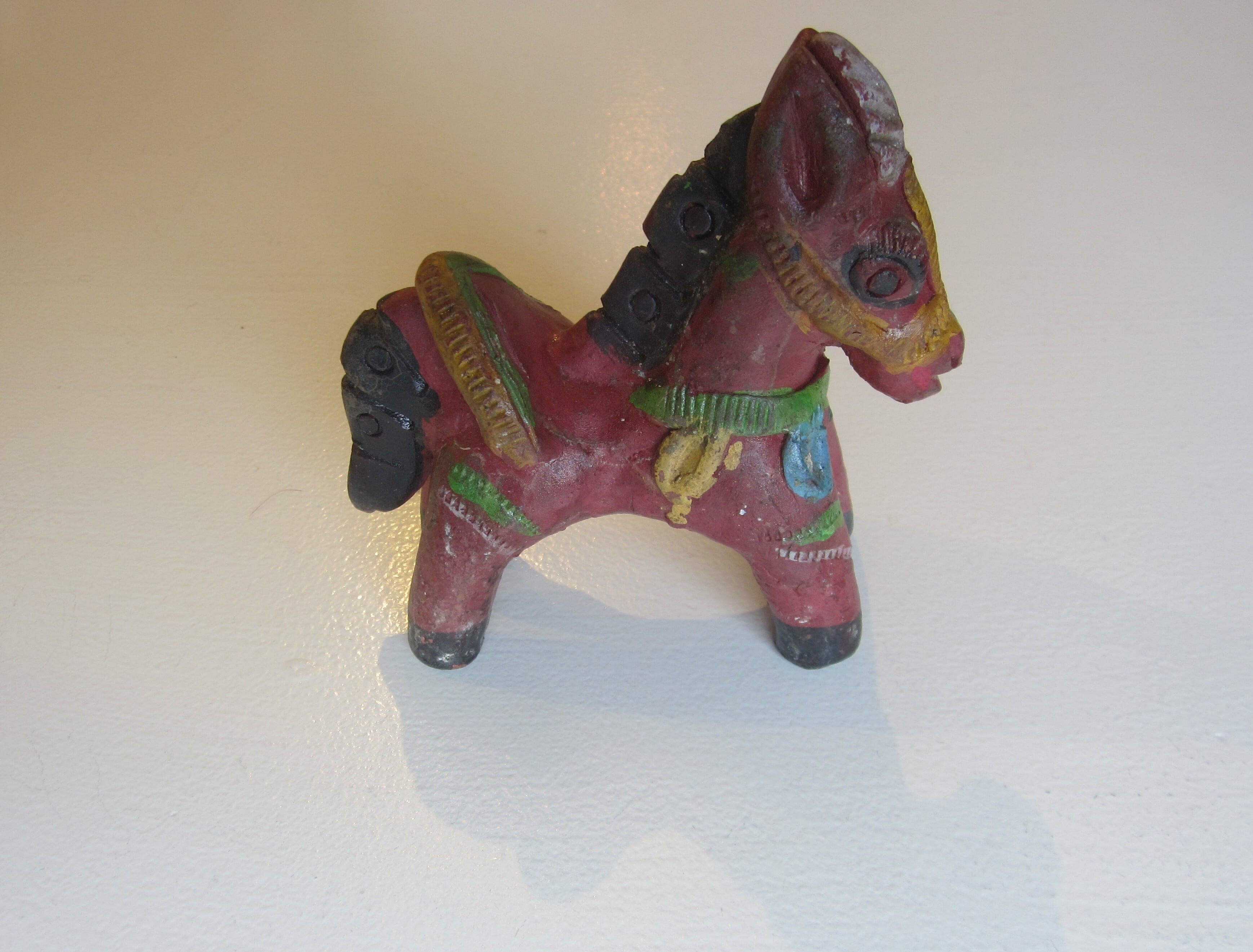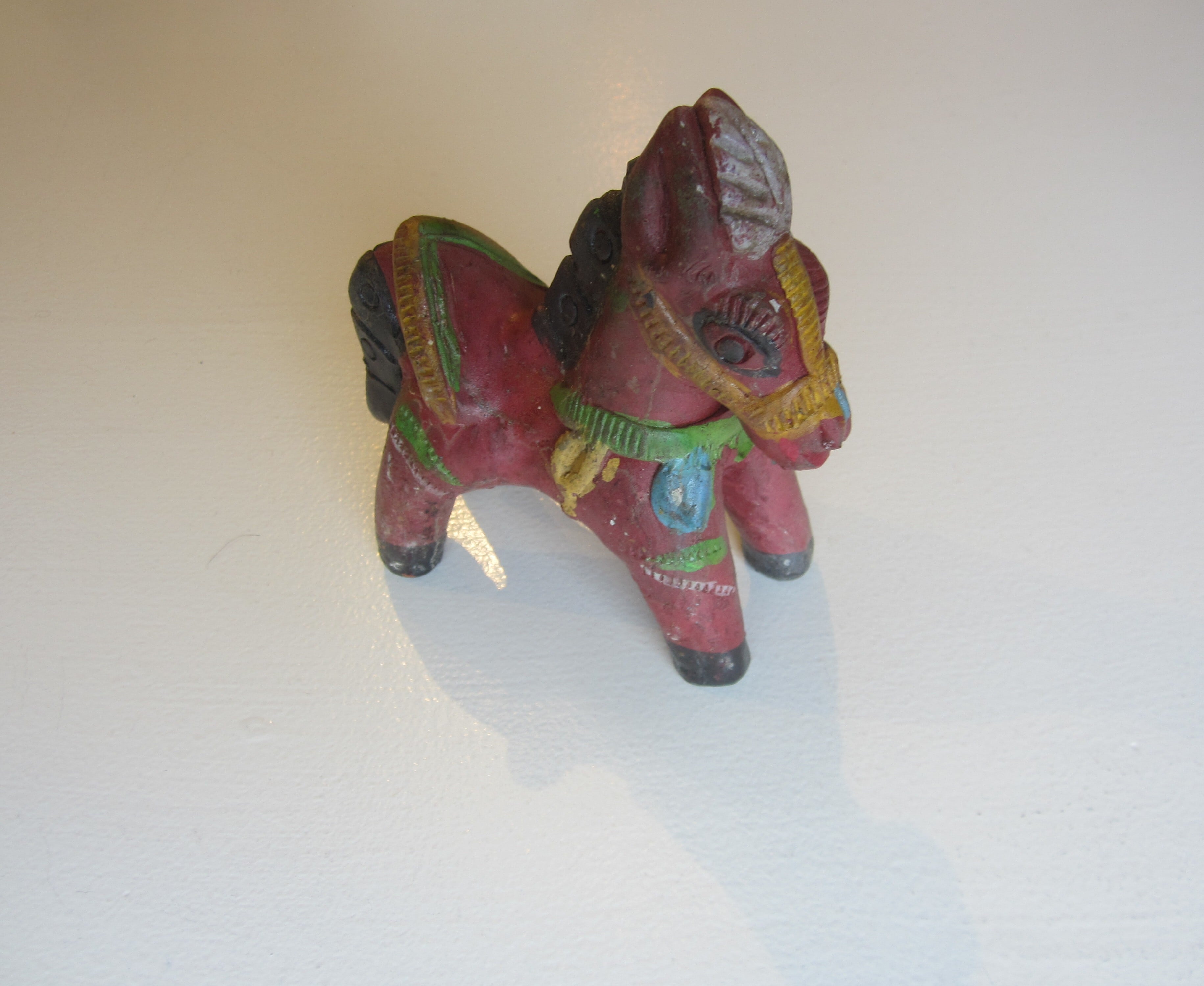 陶器の馬のオブジェ 赤や緑の色合いが幸せを届けてくれそうな 家のシンボルに サイズ 約11.5×H12 陶器 インド製