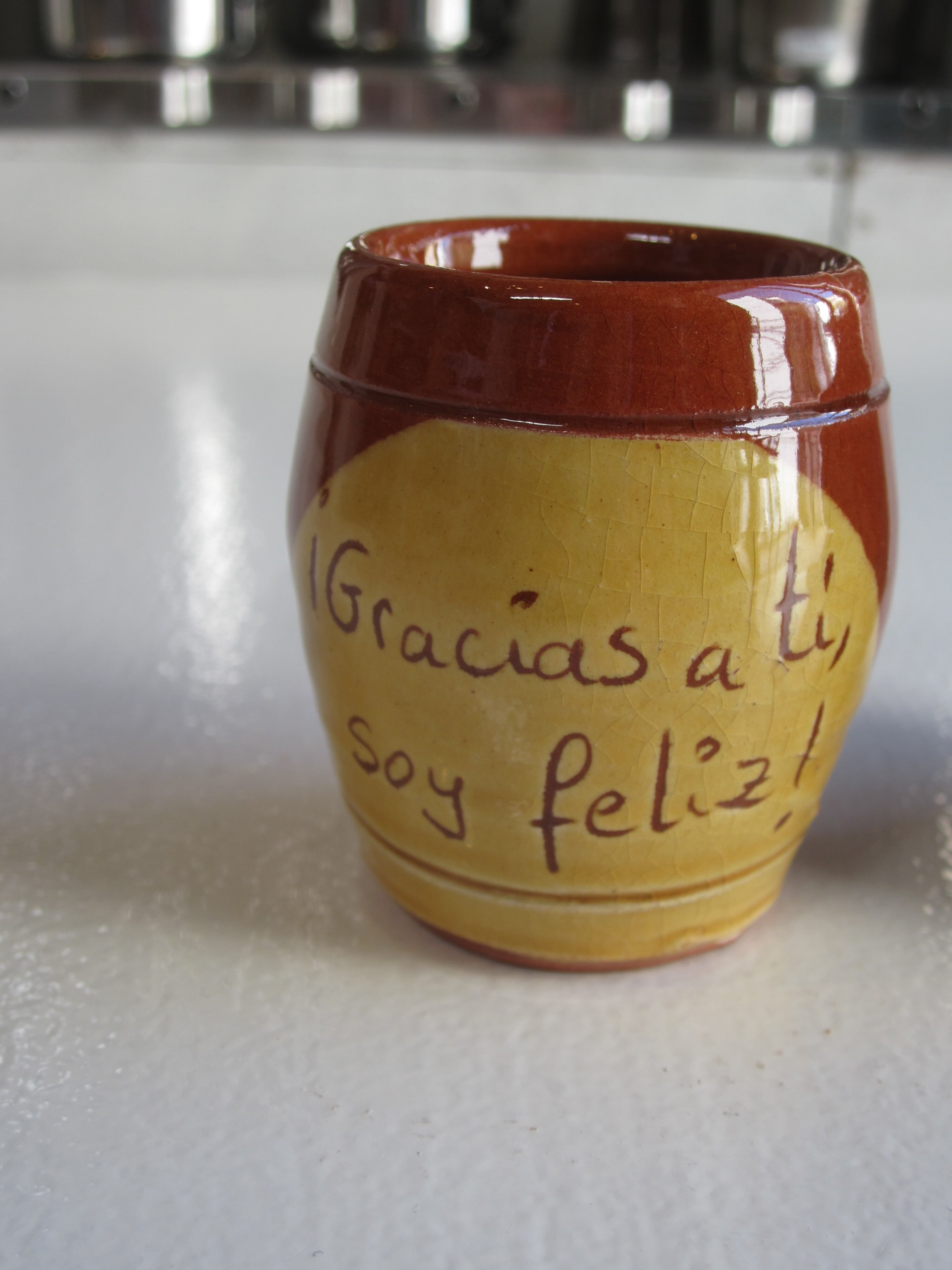 スペインの陶器のミニカップには