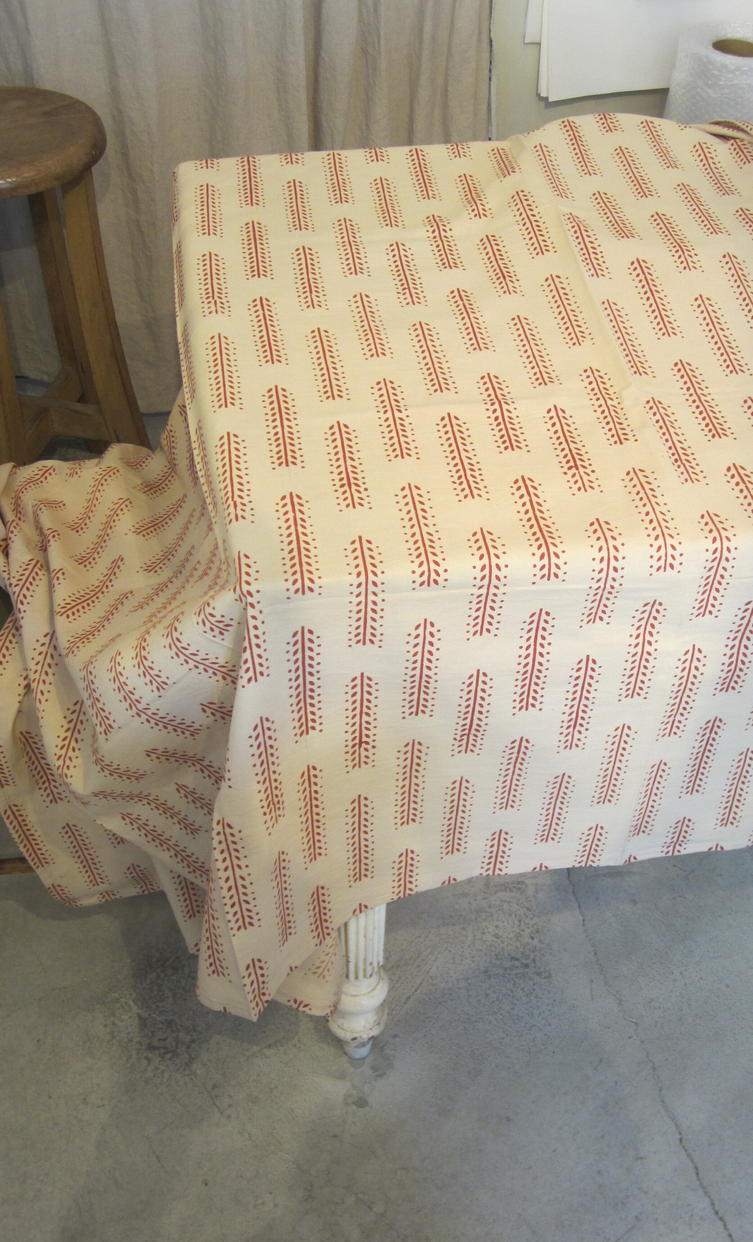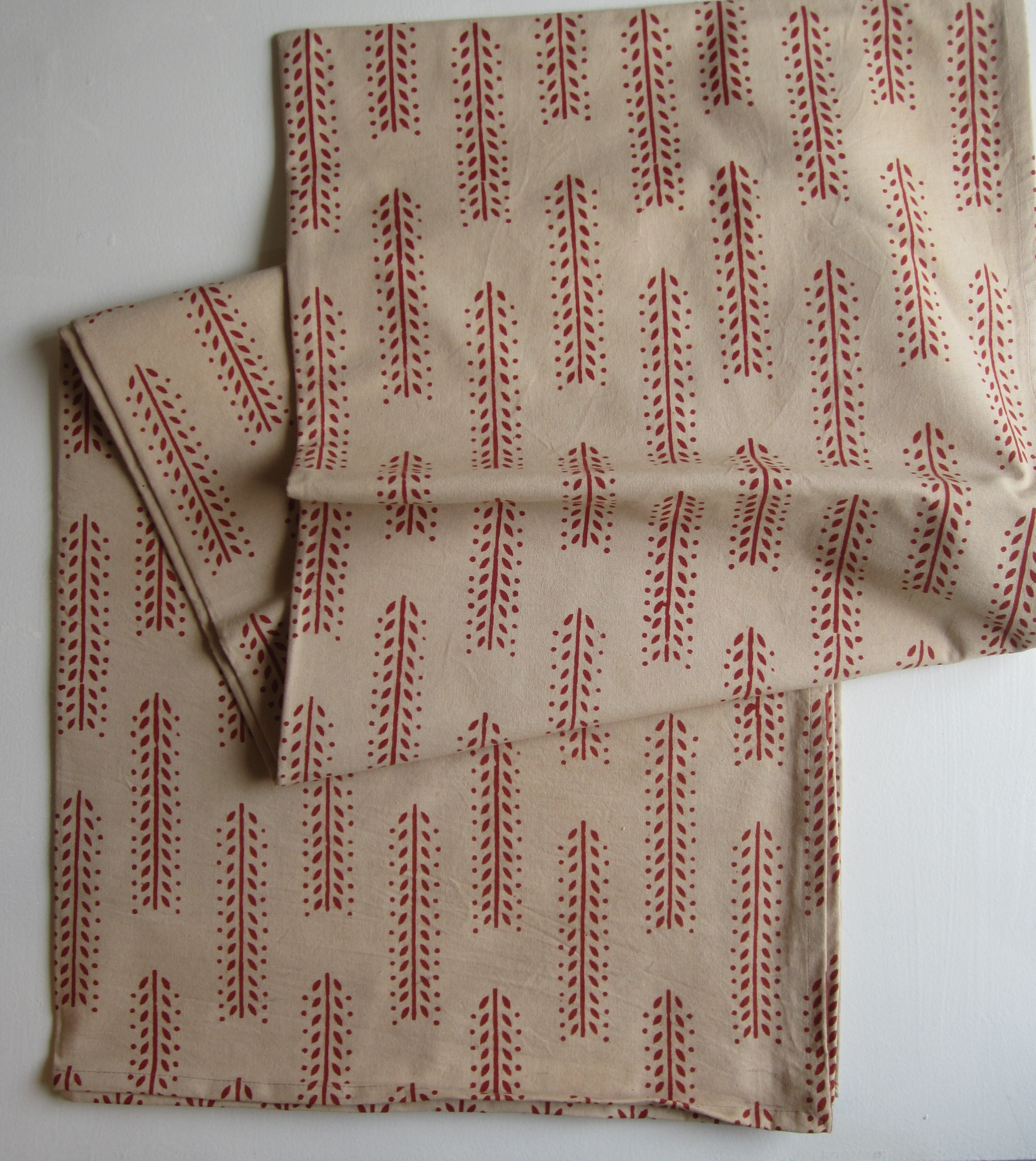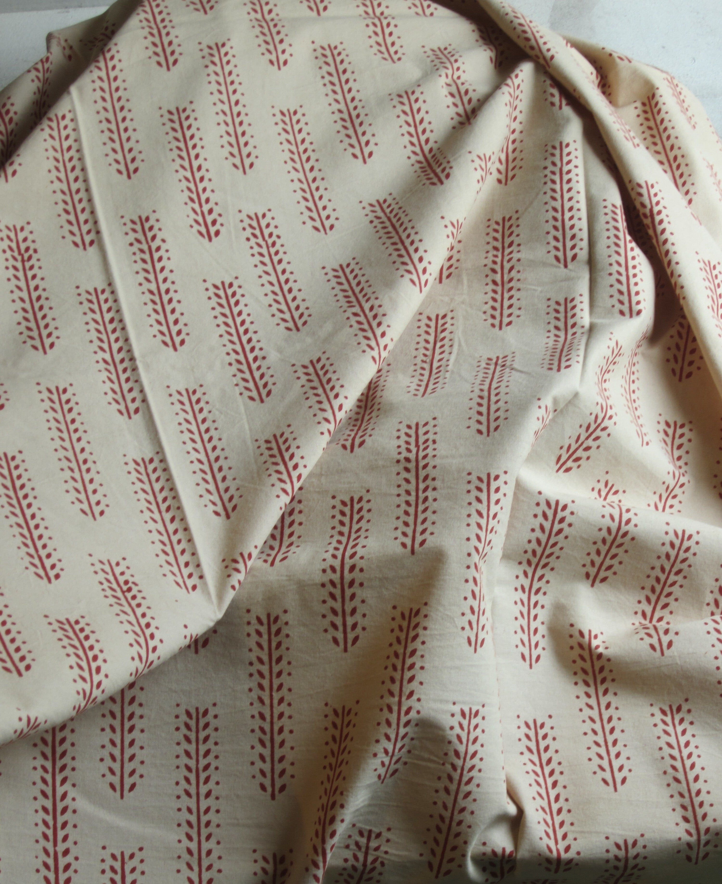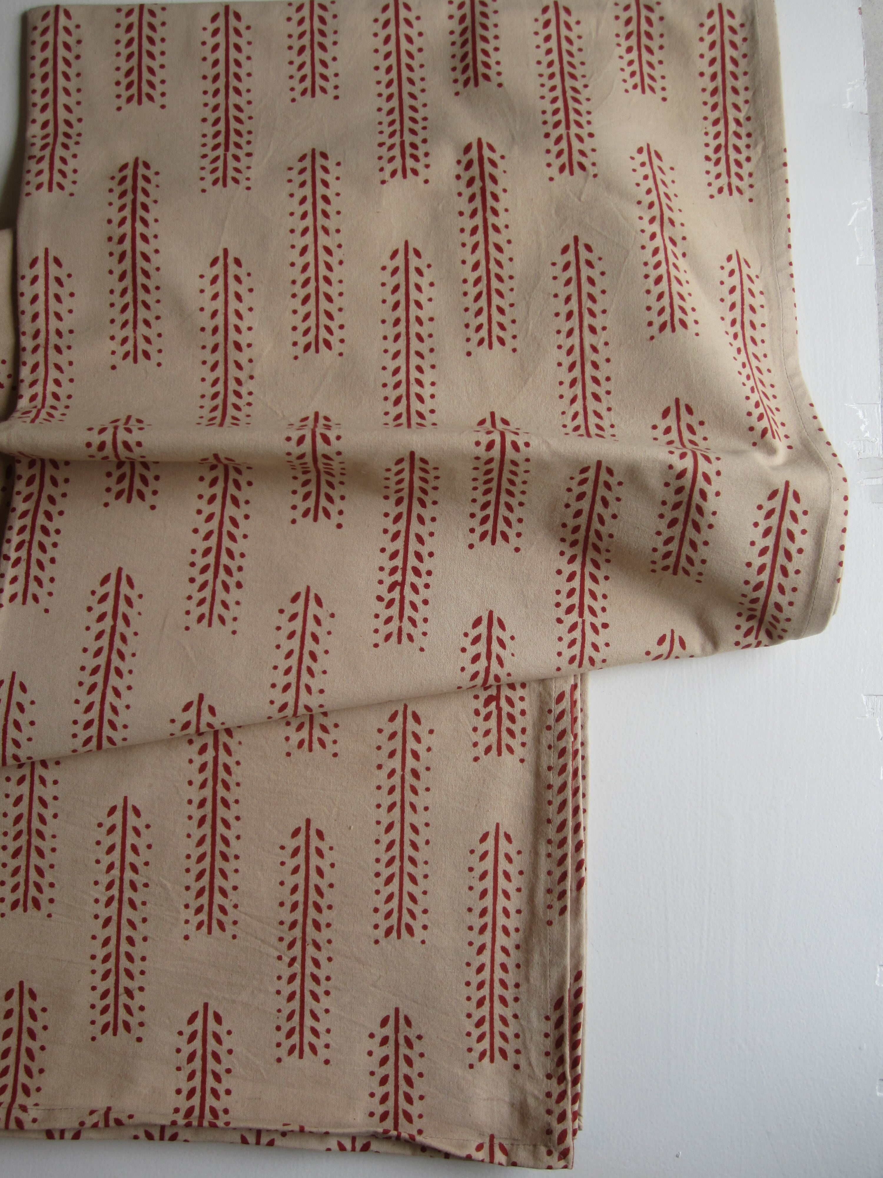 赤系の植物模様のブロックプリント