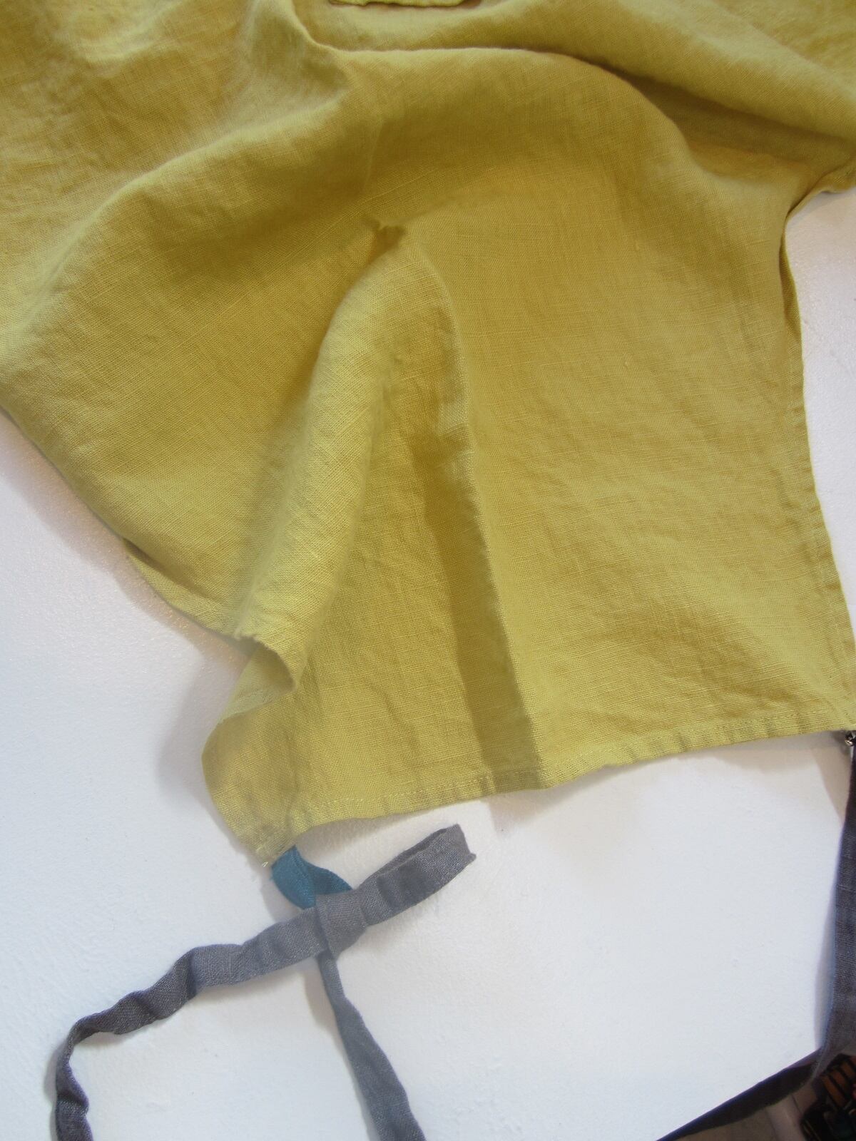 鮮やかなミモザのような色合いのリネンのエプロン