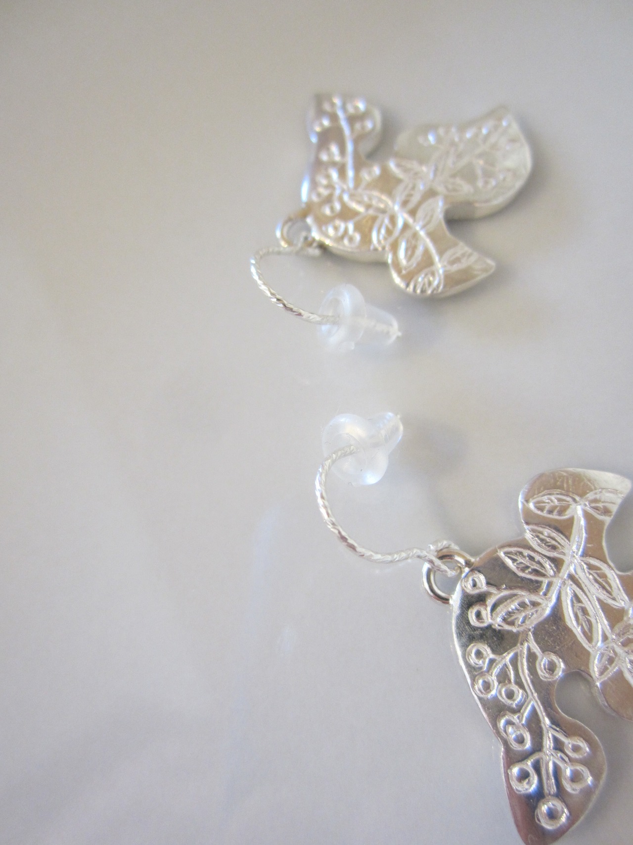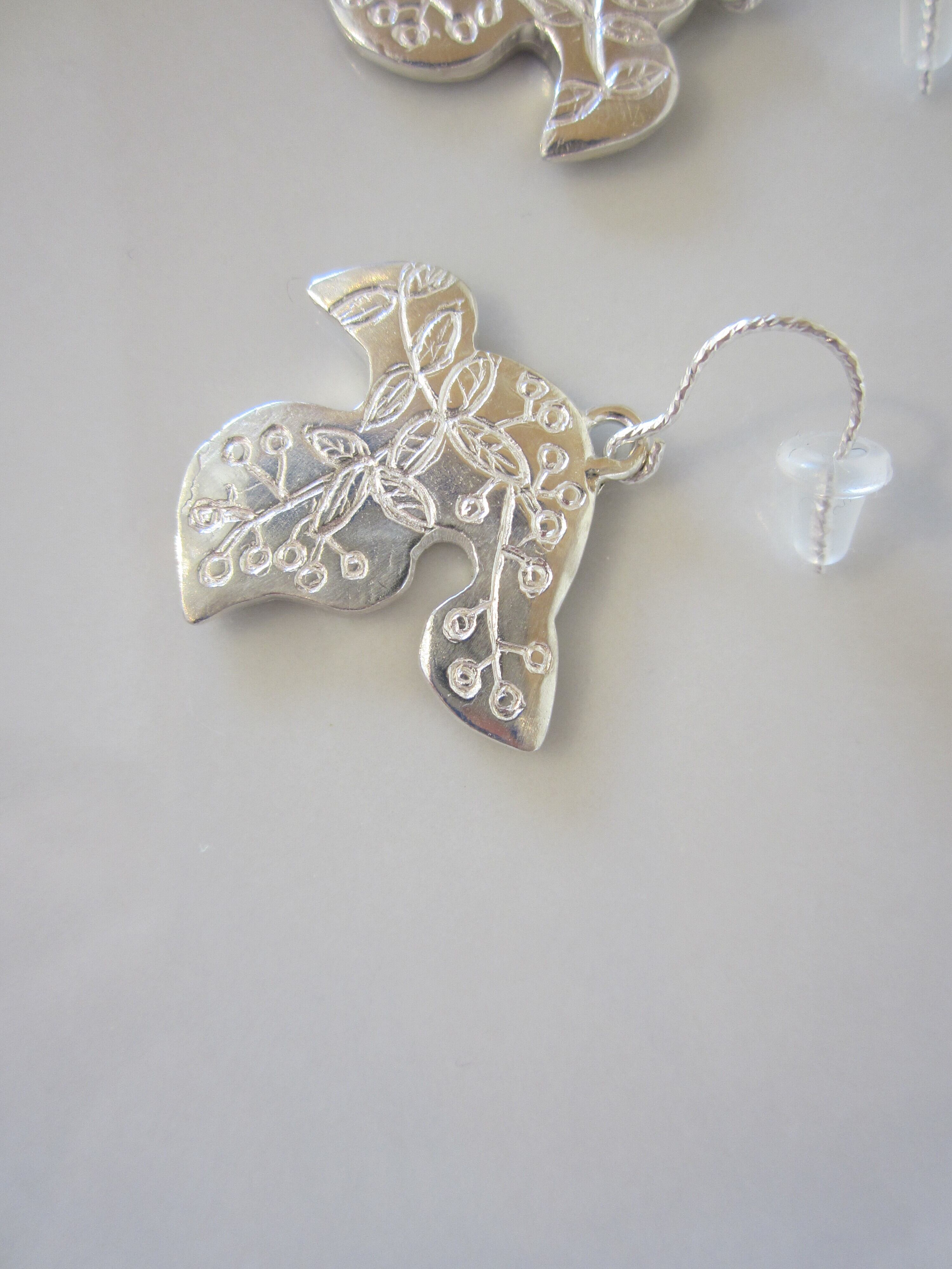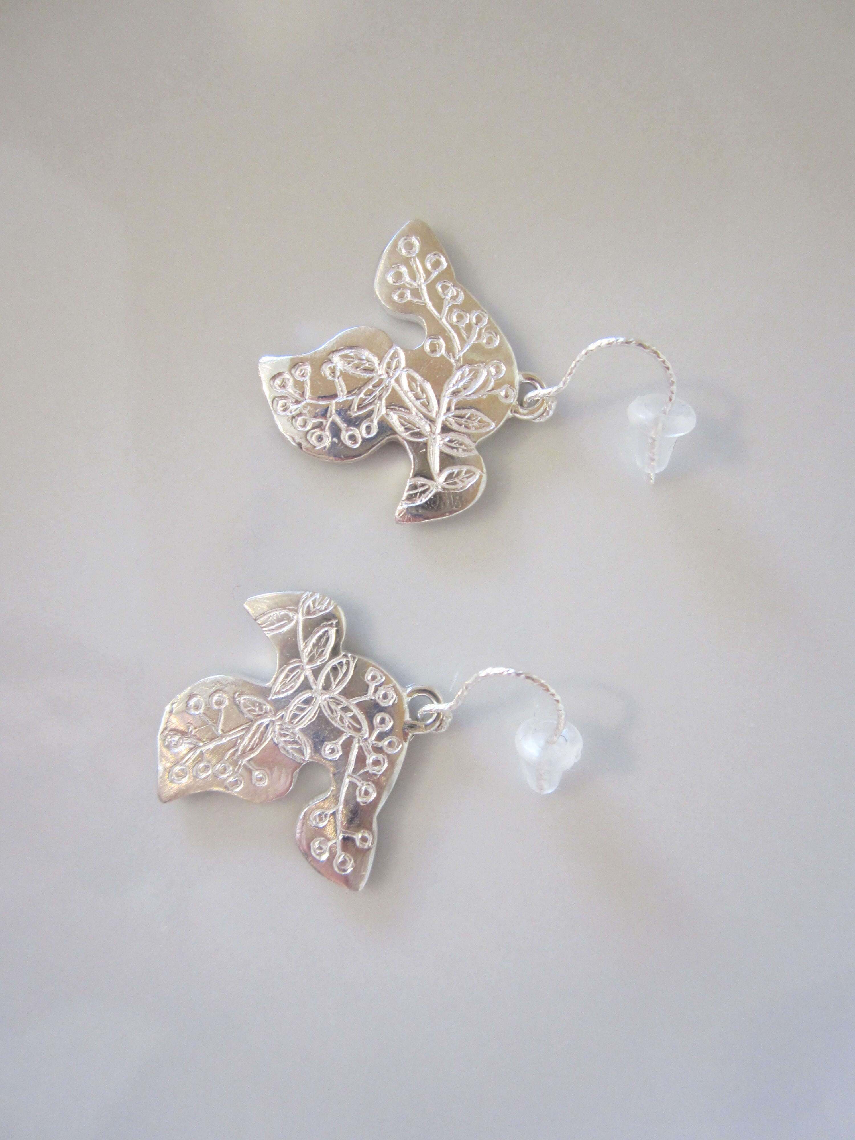 feuacceaaories小川さんが作るアクセサリー 鳥モチーフに植物の柄が施されています 自然の中を自由に飛んでいるよう モチーフ大きさ 2.5×2cm シルバー