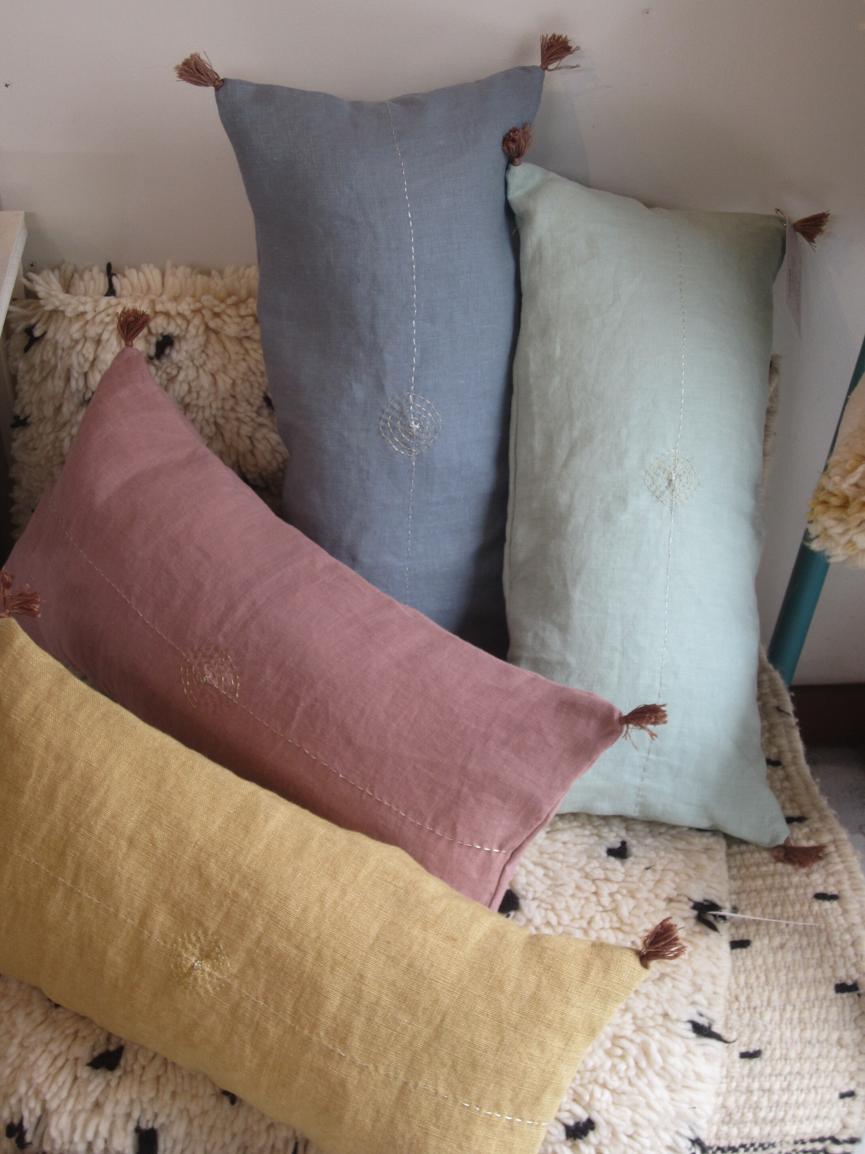 横長タイプは正方形のクッションと並べてリズムをつけたり